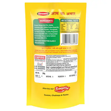 Experience the exceptional taste and quality of our Ram Bandhu Mango Pickle New Pack. Whether you’re preparing a family dinner or crafting a gourmet recipe, Ram Bandhu Mango Pickle New Pack delivers outstanding flavor and versatility. Sourced from trusted producers and handled with care, each piece of Ram Bandhu Mango Pickle New Pack maintains freshness and nutritional value. Enjoy it as a staple in your kitchen, knowing it brings both health and satisfaction to your meals. Add Ram Bandhu Mango Pickle New Pack to your cart today and elevate your culinary creations with a product you can trust.